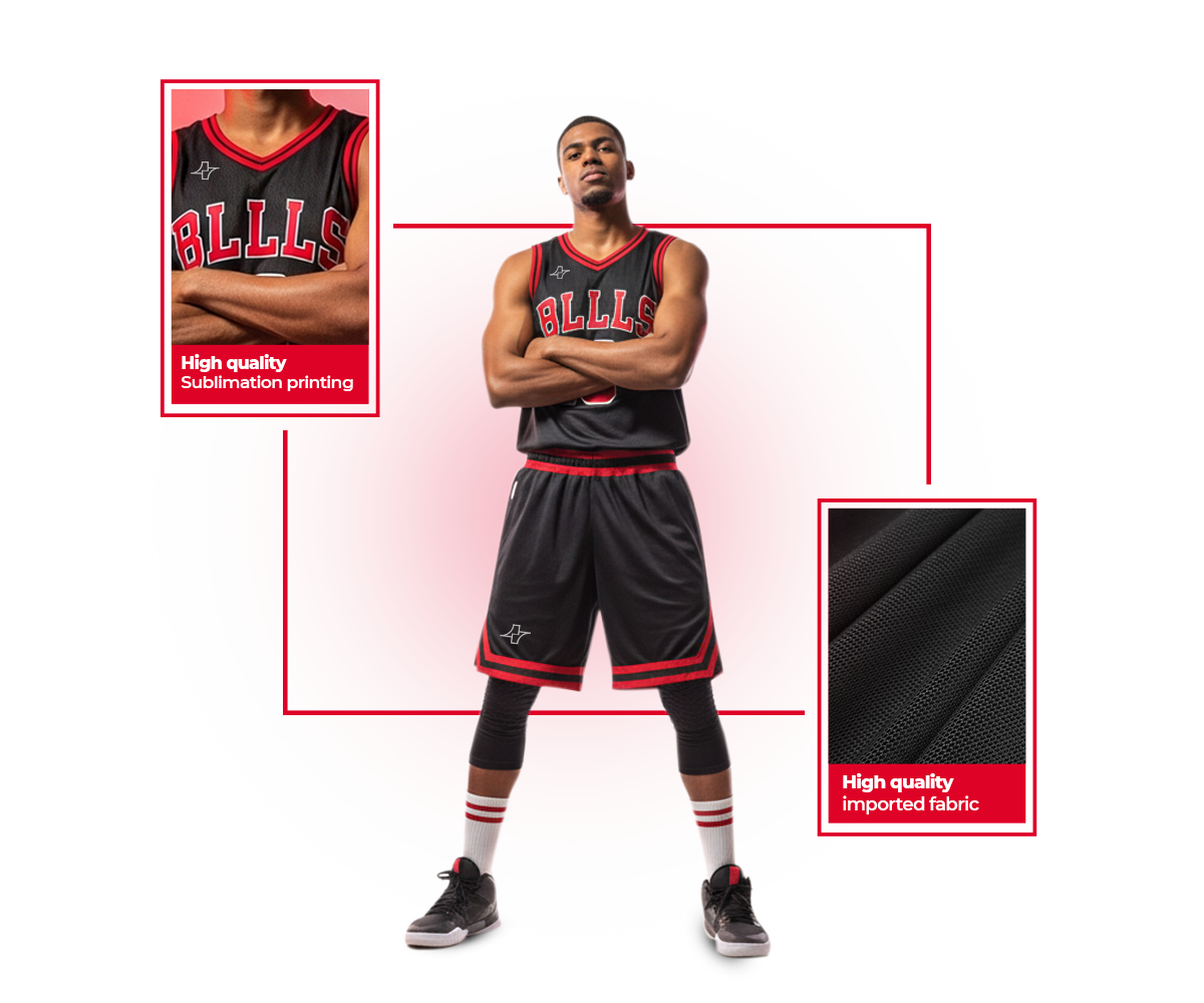 Discover high-performance basketball kits and custom sportswear. Choose from our pre-designs, upload your own, or let us create a design that matches your team’s spirit.